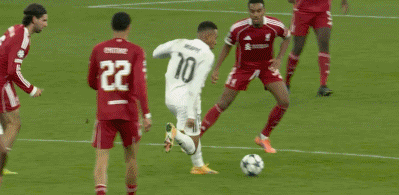 第18分鐘,貝林厄姆架炮,姆巴佩打門踢飛