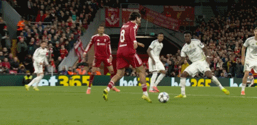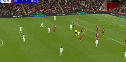第61分鐘,索博開出任意球,麥卡利斯特頭球破門,利物浦1-0領(lǐng)先皇馬!
